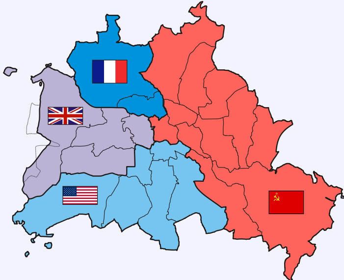 Berlin war vor der Wiedervereinigung in vier Sektoren geteilt, wobei der französische (hier wohne ich schon immer !), der englische und der amerikanische Sektor zum West-Teil Berlins gehörte und der sowjetische Sektor zum Ost-Teil Berlins und somit auch zur ehemaligen DDR gehörte.