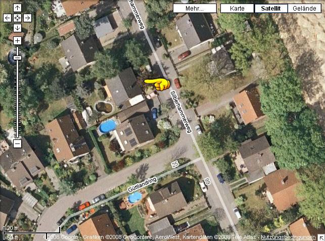 Hier zeige ich Euch mal eine Luftaufnahme von der Ecke, wo ich wohne.