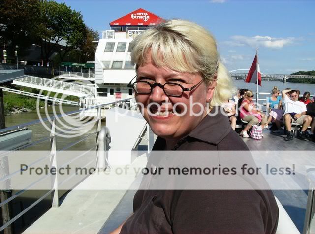 Am Montag war ich mit meiner Schwester in Bratislava. Wir waren mit dem Twin City Liner unterwegs, einem Katamaran, der bis zu 70 km/h Geschwindigkeit erreichen kann. Wir waren mit einer Höchstgeschwindigkeit von etwa 60 bei der Hinfahrt (stromabwärts) und 50 bei der Rückfahrt (stromaufwärts) unterwegs. Da hält am Außendeck keine Frisur, so bläst der Fahrtwind. Bei der Hinfahrt hatten wir schlechtes Wetter, die Rückfahrt fand dann bei strahlendem Sonnenschein statt. Was diese Minireise für mich bedeutet, wissen ohnehin ein paar Leute hier...